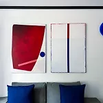 تتكوّن شقة Composition 23 With Blue Circle بمساحة 25 مترًا مربعًا من منطقة الجلوس، وتشتمل على الصالون، فضلاً عن وسائل الراحة الحديثة مثل التلفزيون بشاشة مسطحة مع قنوات فضائية. يحتوي الحمام على المرحاض المنفصل والدوش، في حين يتمّ توفير مجفف الشعر والمناشف.