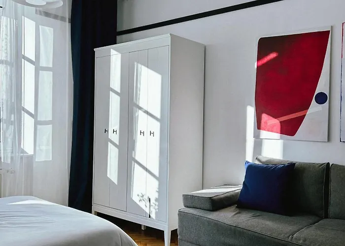 تقع شقة Composition 23 With Blue Circle المكونة من 1 غرفة نوم في منطقة المدينة القديمة، في غضون 25 دقائق تقريبًا سيرًا على الأقدام من منتزه بلونيا.